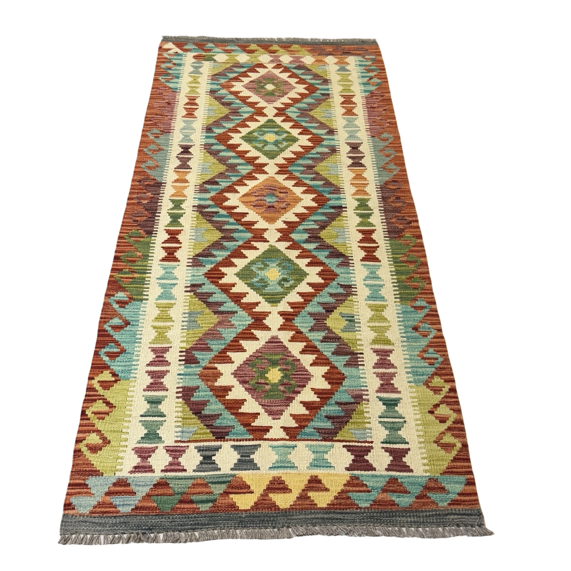 198 x 79cm Hand Woven Afghan Kilim Chobi Runner Rug