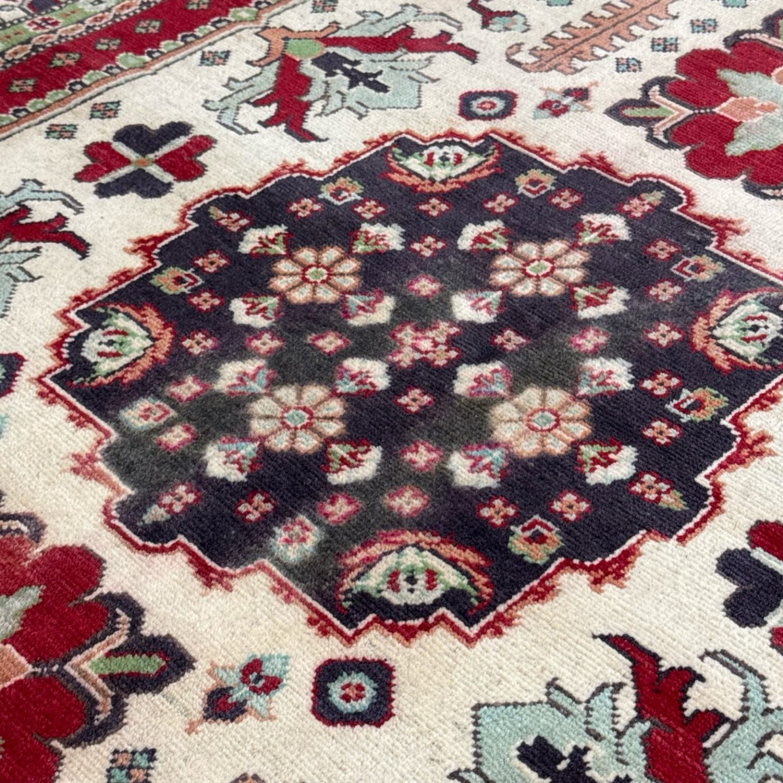 The Afghan Kazak rug is a hand-knotted treasure known for its bold geometric designs and vibrant colors. Made using traditional techniques and high-quality wool, this rug showcases the rich cultural heritage of the Caucasus region, offering durability and a striking aesthetic that enhances any space.
