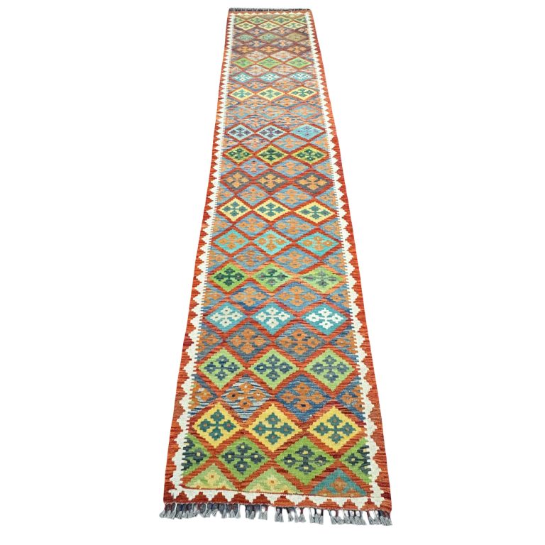 400 x 88cm Long Hand Woven Afghan Kilim Chobi Runner Rug