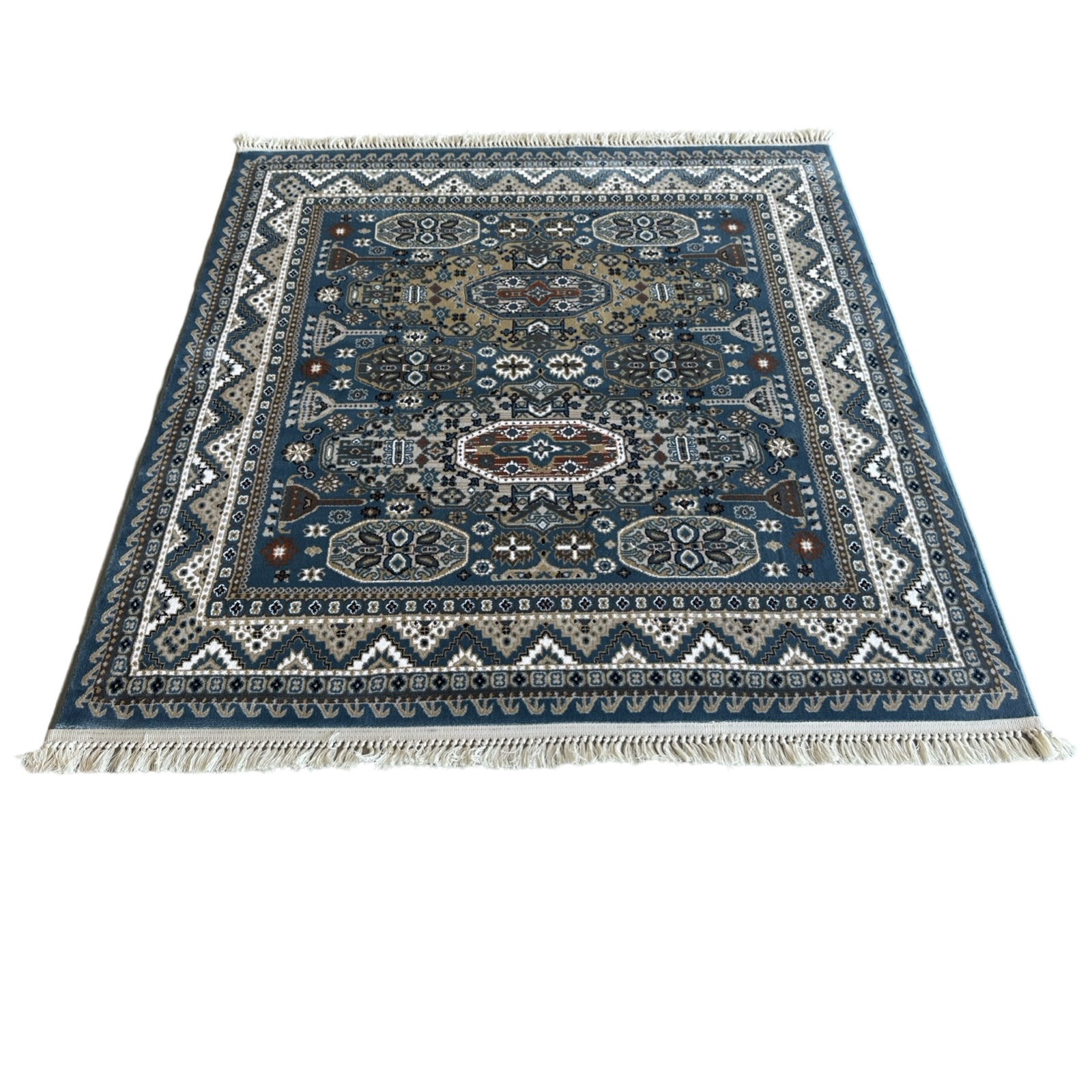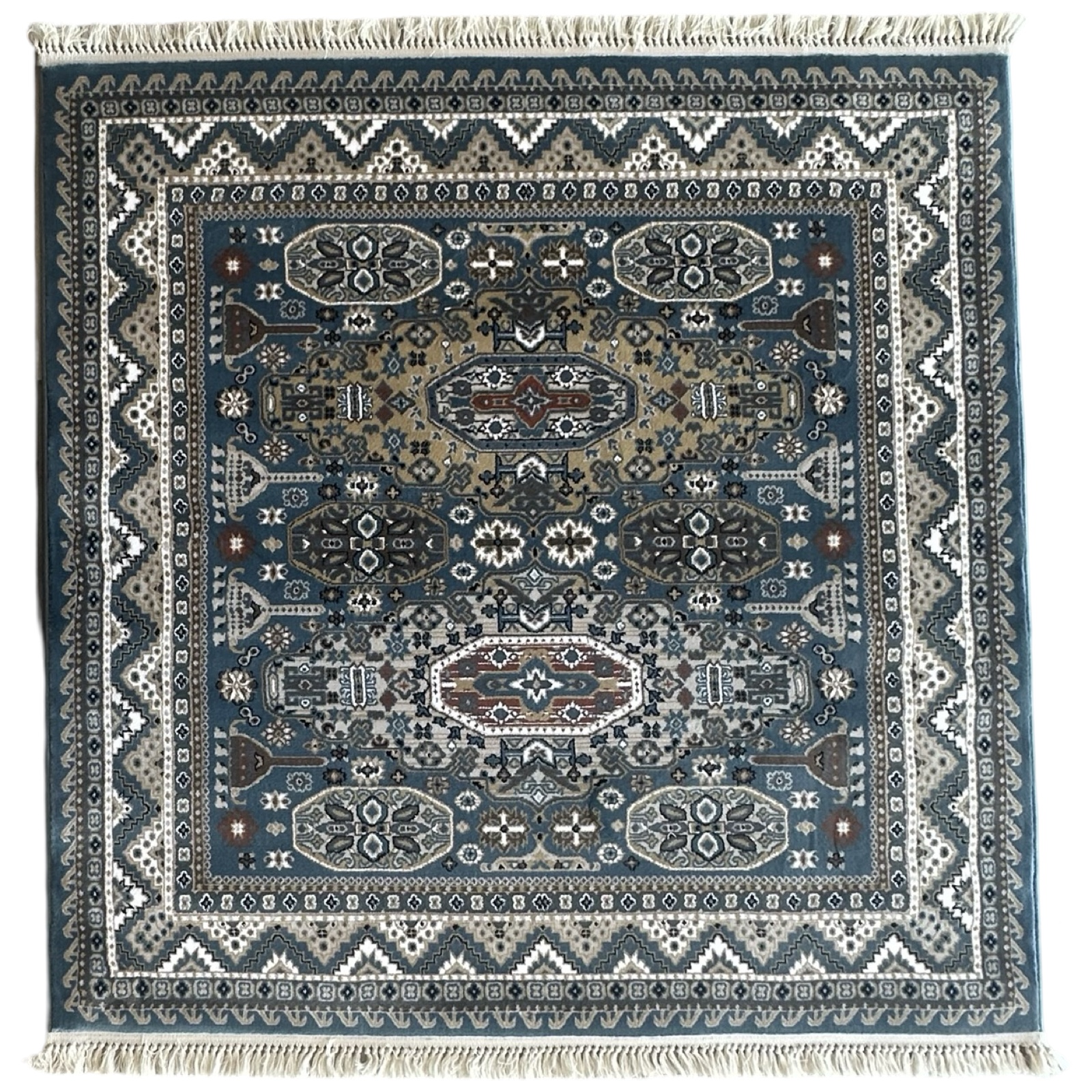 200 x 200cm Persian Tribal Geometric Design Blue Square Rug