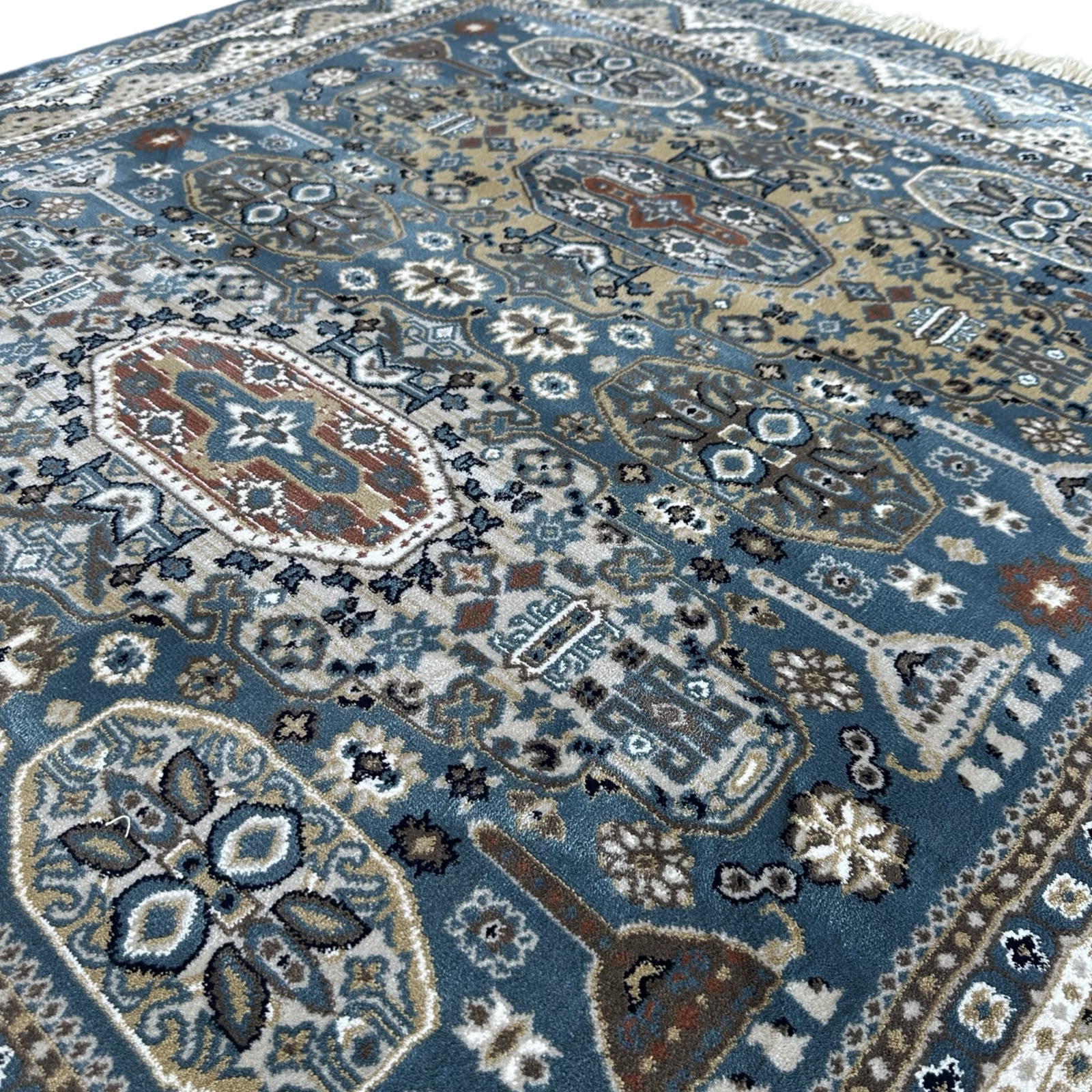 Product Details Luxuriously Soft Texture – Feels smooth and comfortable underfoot, perfect for daily use. Stain & Fade Resistant – Maintains its vibrant look even in high-traffic or sunlit areas. Precision Weave – Machine-made construction delivers clean patterns and consistent detailing. Color-Rich Design – Polyester holds dye well, resulting in sharp, vivid patterns that last. Easy to Maintain – Simple to vacuum and spot clean, making it ideal for busy households. Durable Construction – Designed to resist everyday wear while retaining its shape and style. Non-Shedding – Keeps your space clean and neat without extra effort. Primary Color Is Beige And Cream Pile Material: 100% Polyester