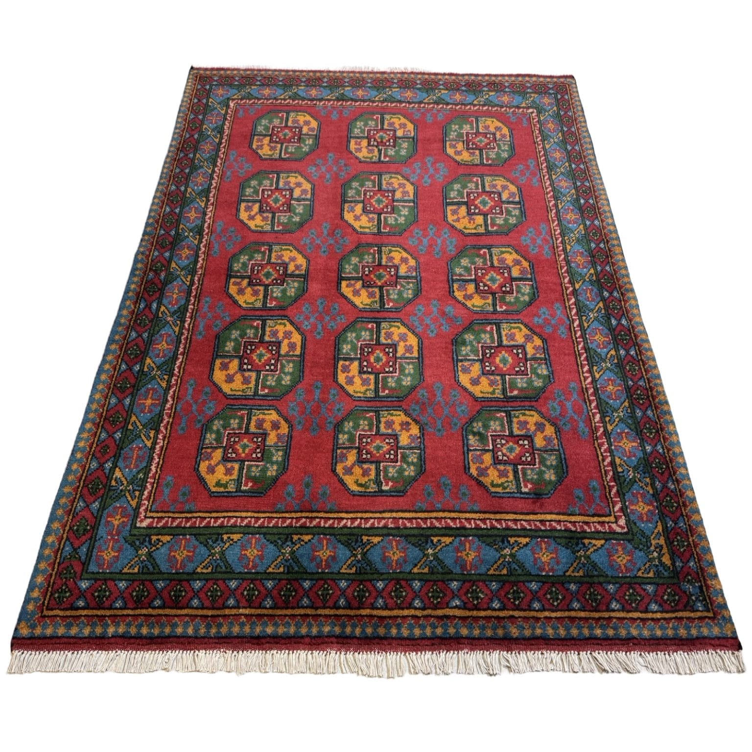 205 x 136cm Hand Knotted Red Afghan Akche Filpai – Wool Rug
