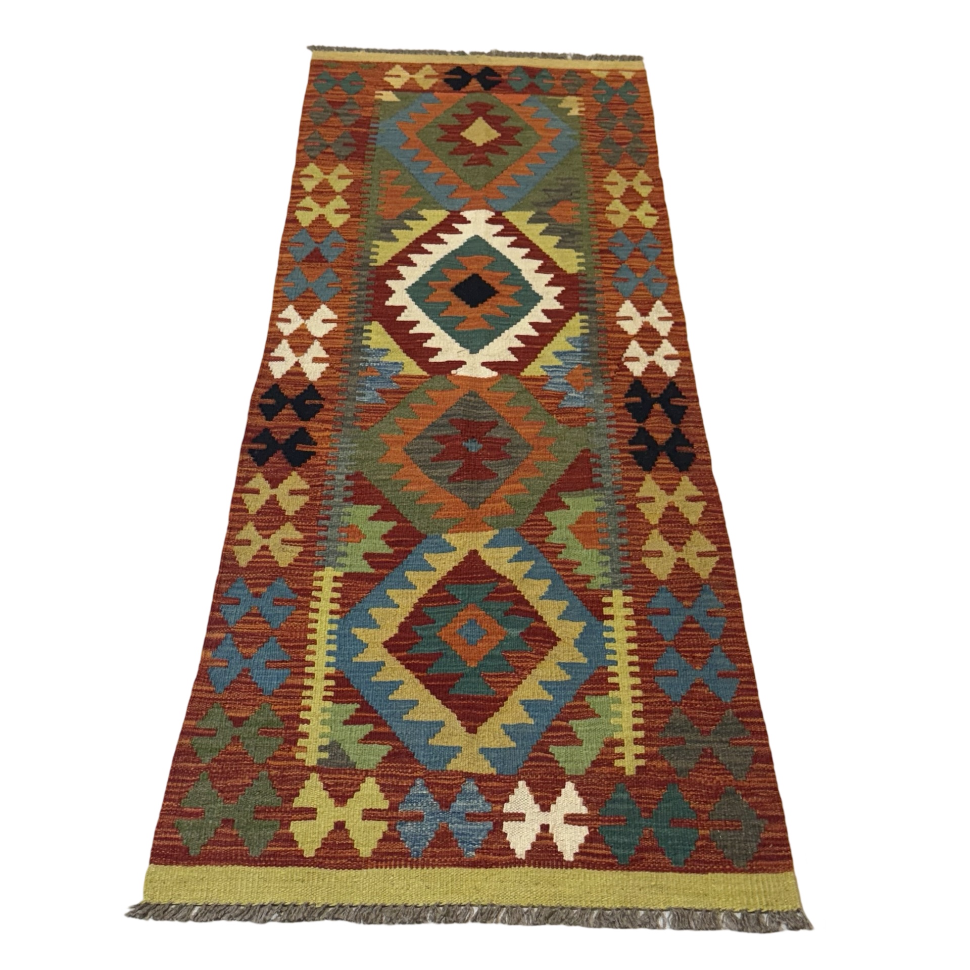 210 x 81cm Hand Woven Afghan Kilim Chobi Runner Rug