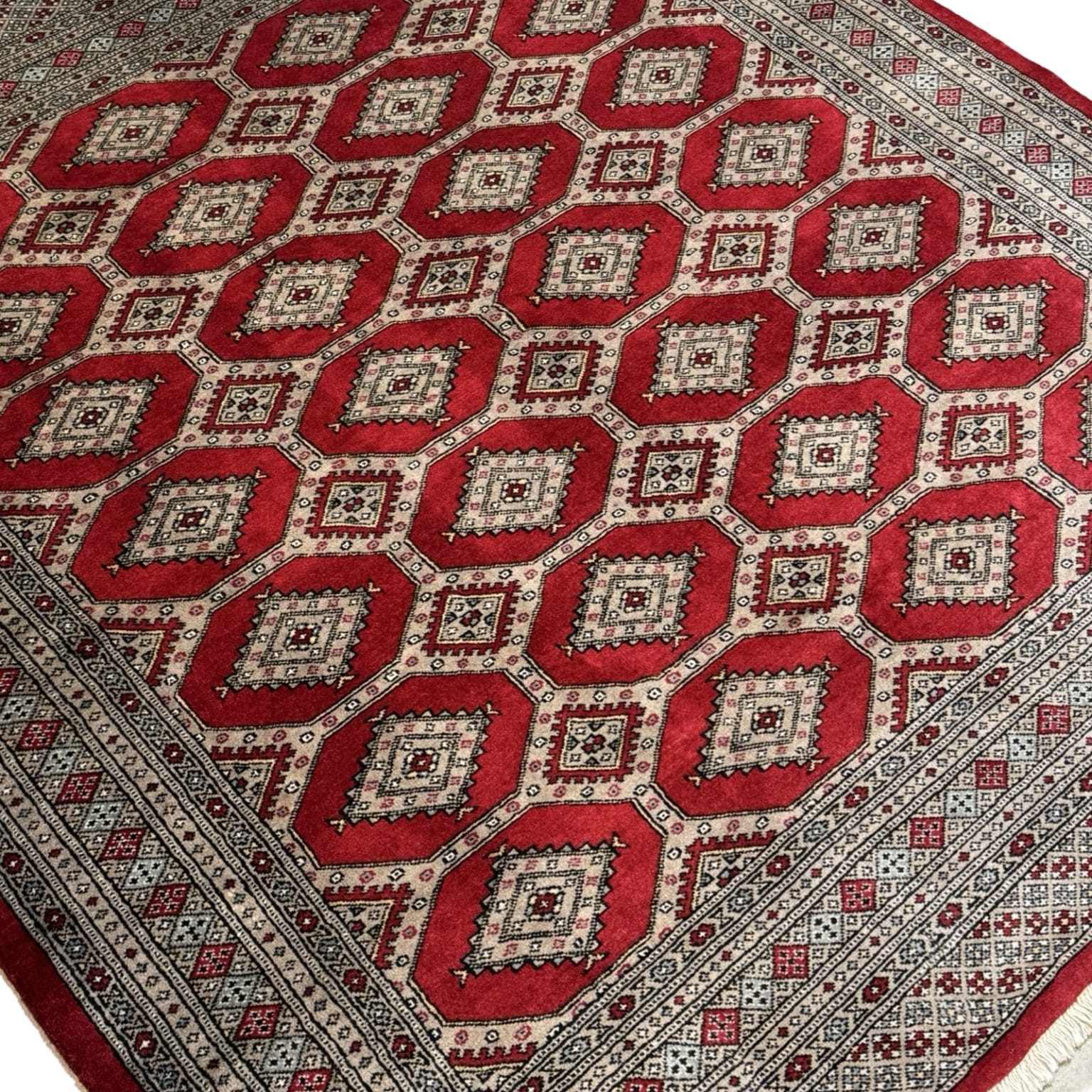 221 x 206cm Hand Knotted Karachi Jaldar Bokhara – Red Rug