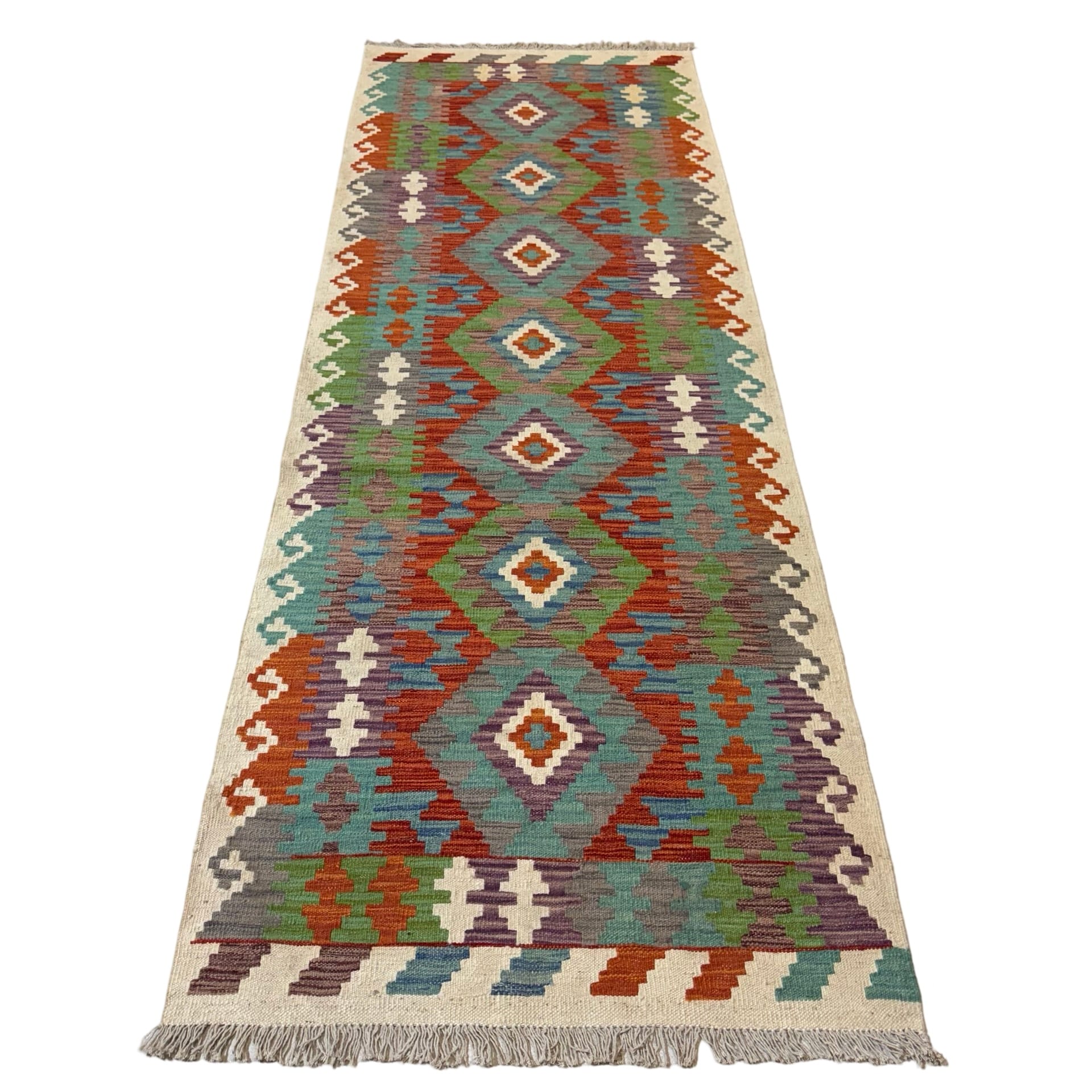 195 x 86cm Hand Woven Afghan Kilim Chobi Runner Rug