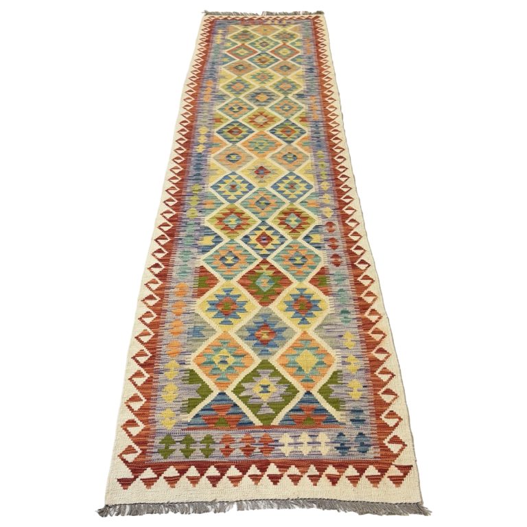 288 x 99cm Hand Knotted Afghan Kazak Wool Runner Rug