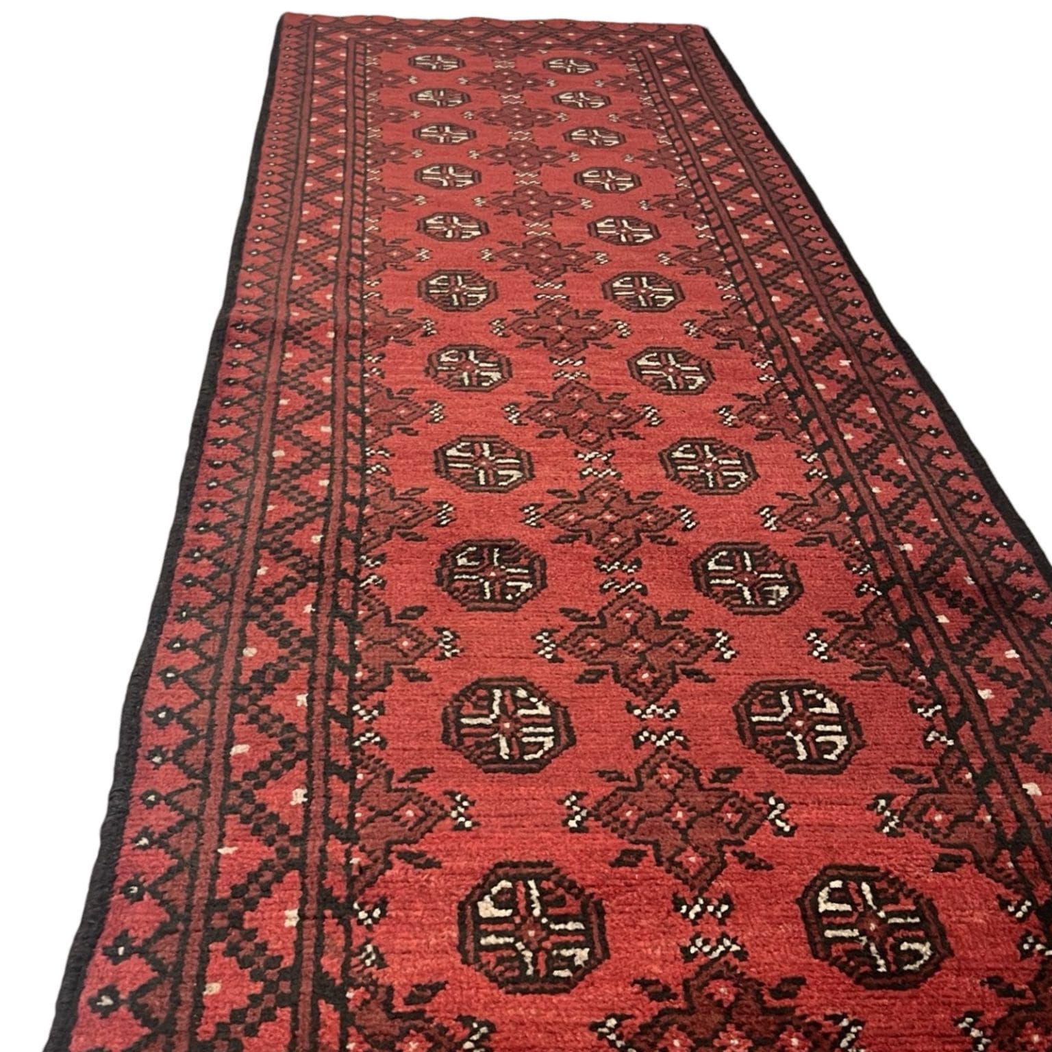 290 x 80cm Hand Knotted Red Afghan Runner Rug