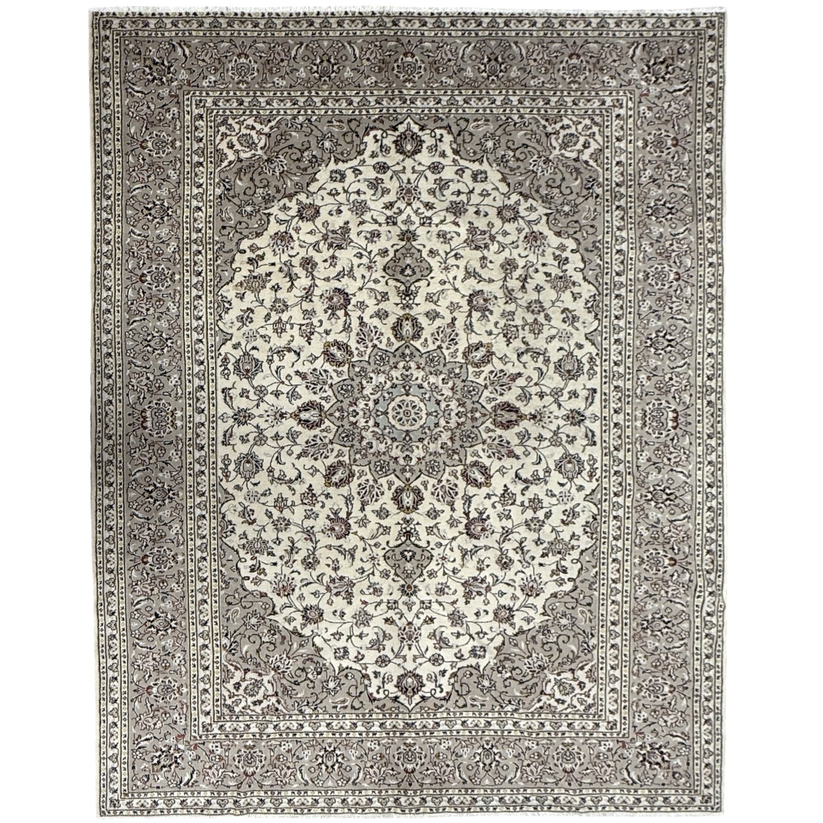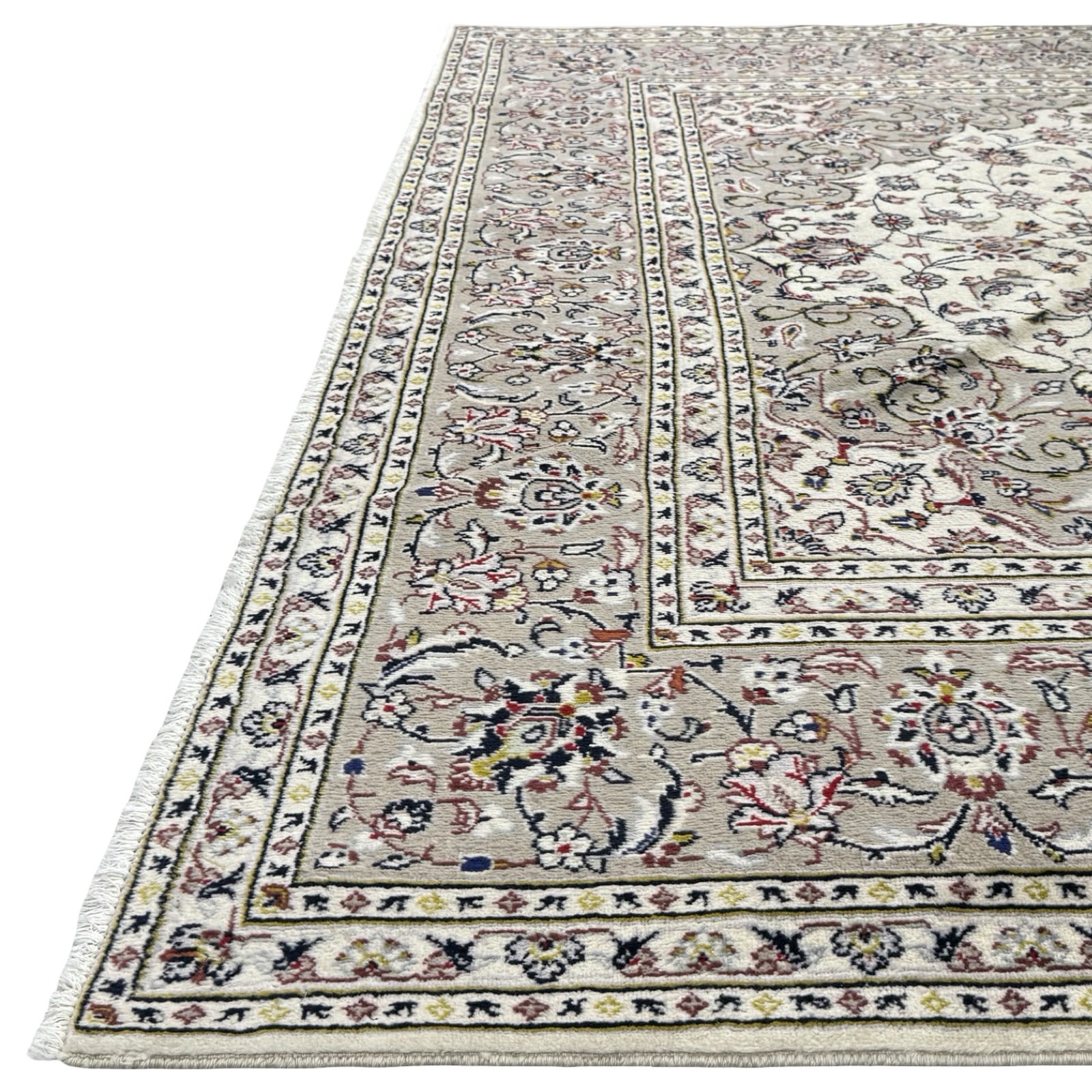 345 x 250cm Hand Knotted Floral Ivory Kashan Persian Rug