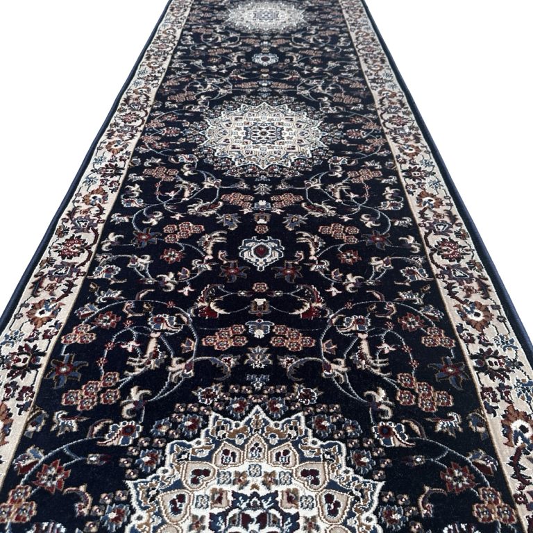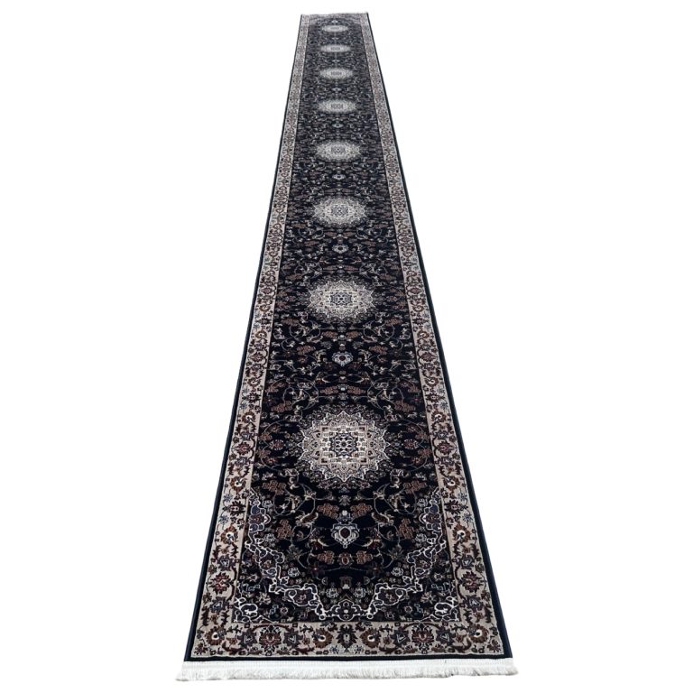This rug is machine-made in Iran, featuring an elegant Persian medallion design inspired by classic Iranian patterns. It has a soft, comfortable pile and detailed motifs that bring a rich, traditional look to any space.