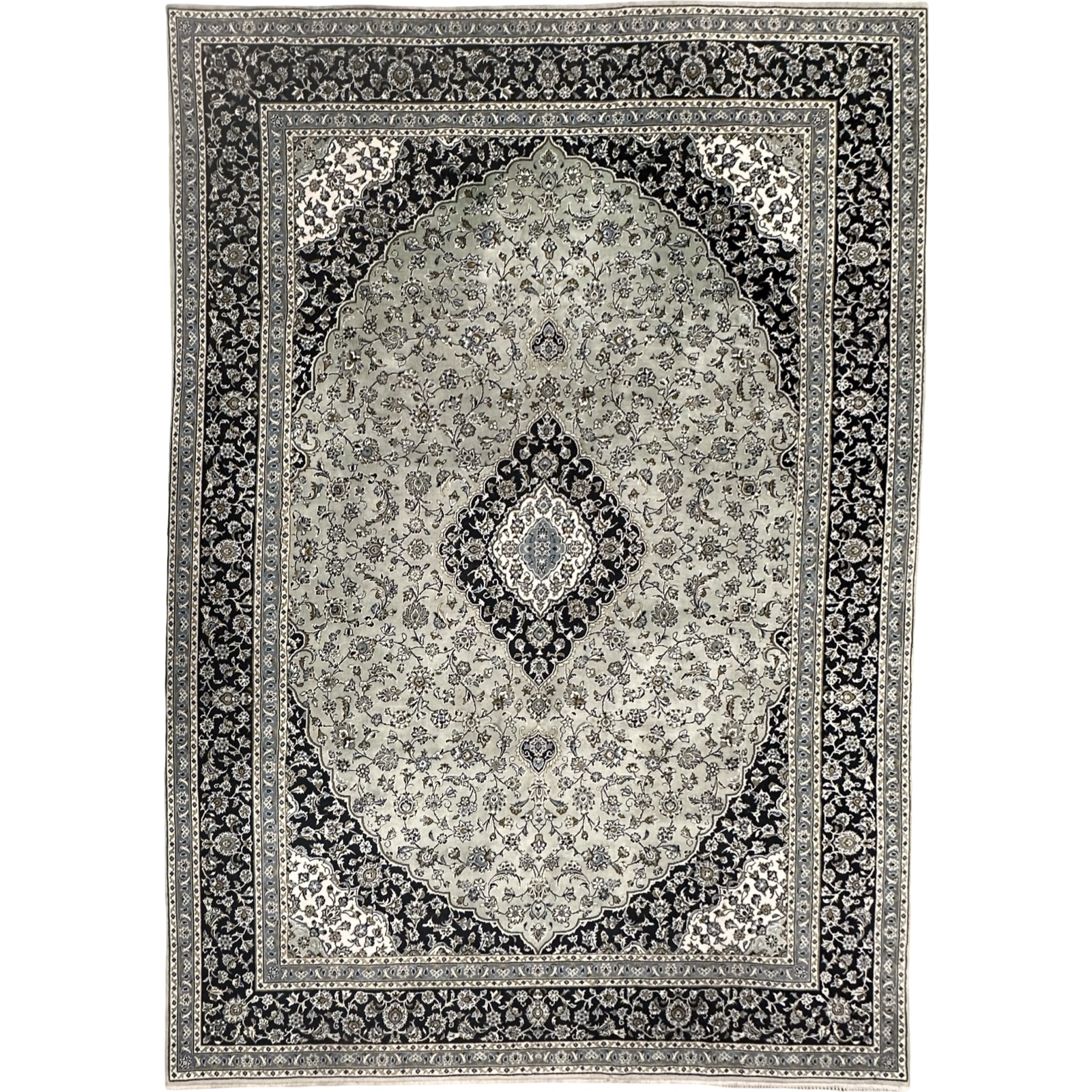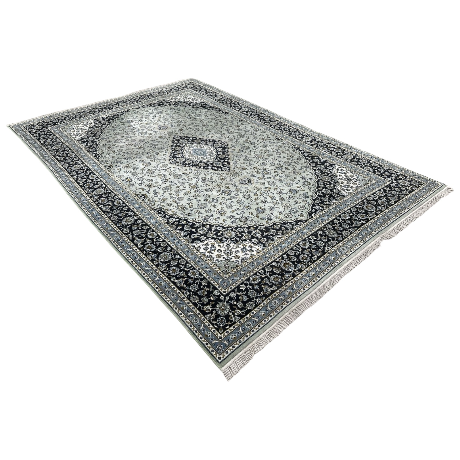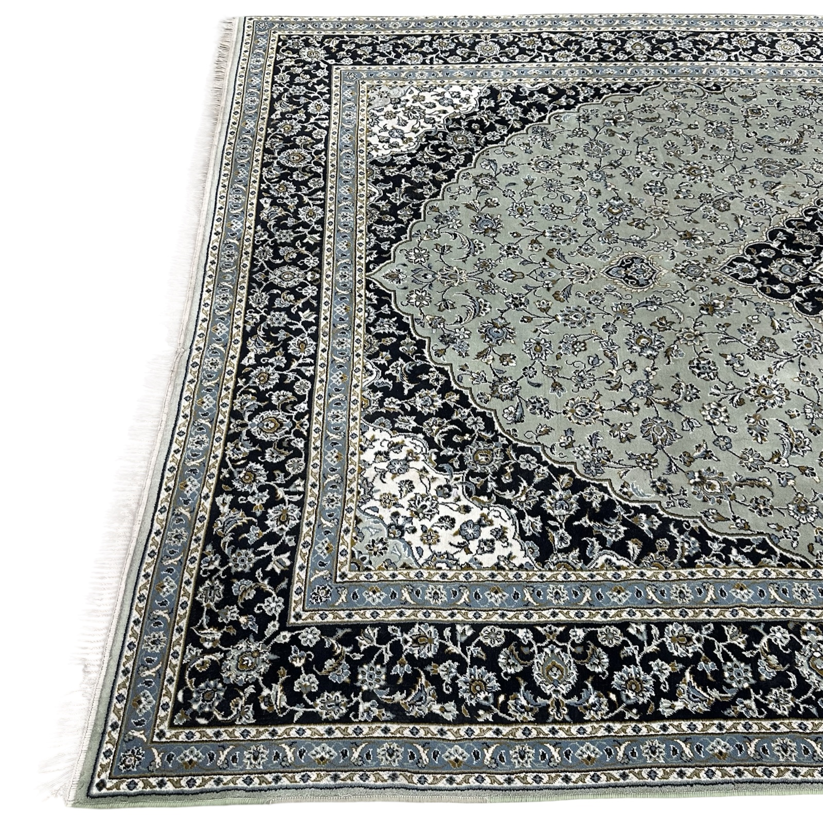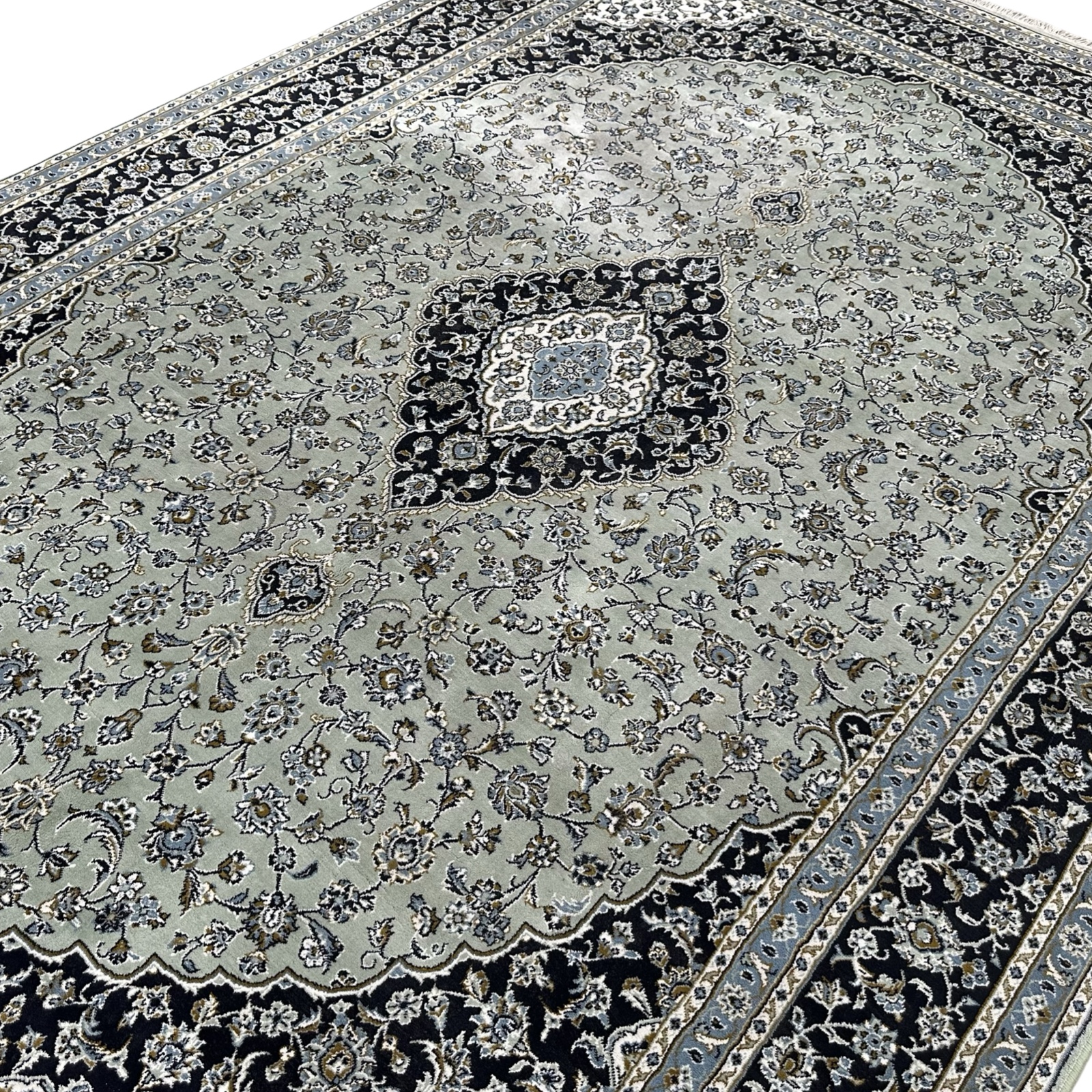 350 x 250cm Persian HandTufted Kashan Design in Olive Green Rug