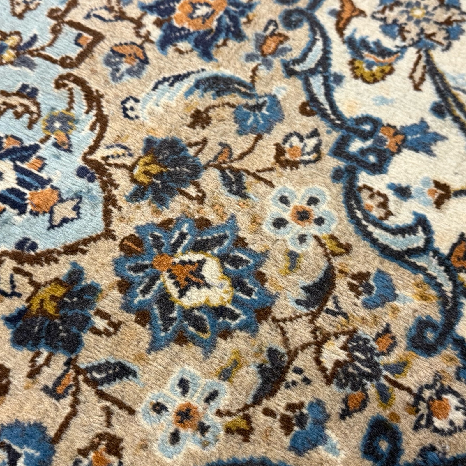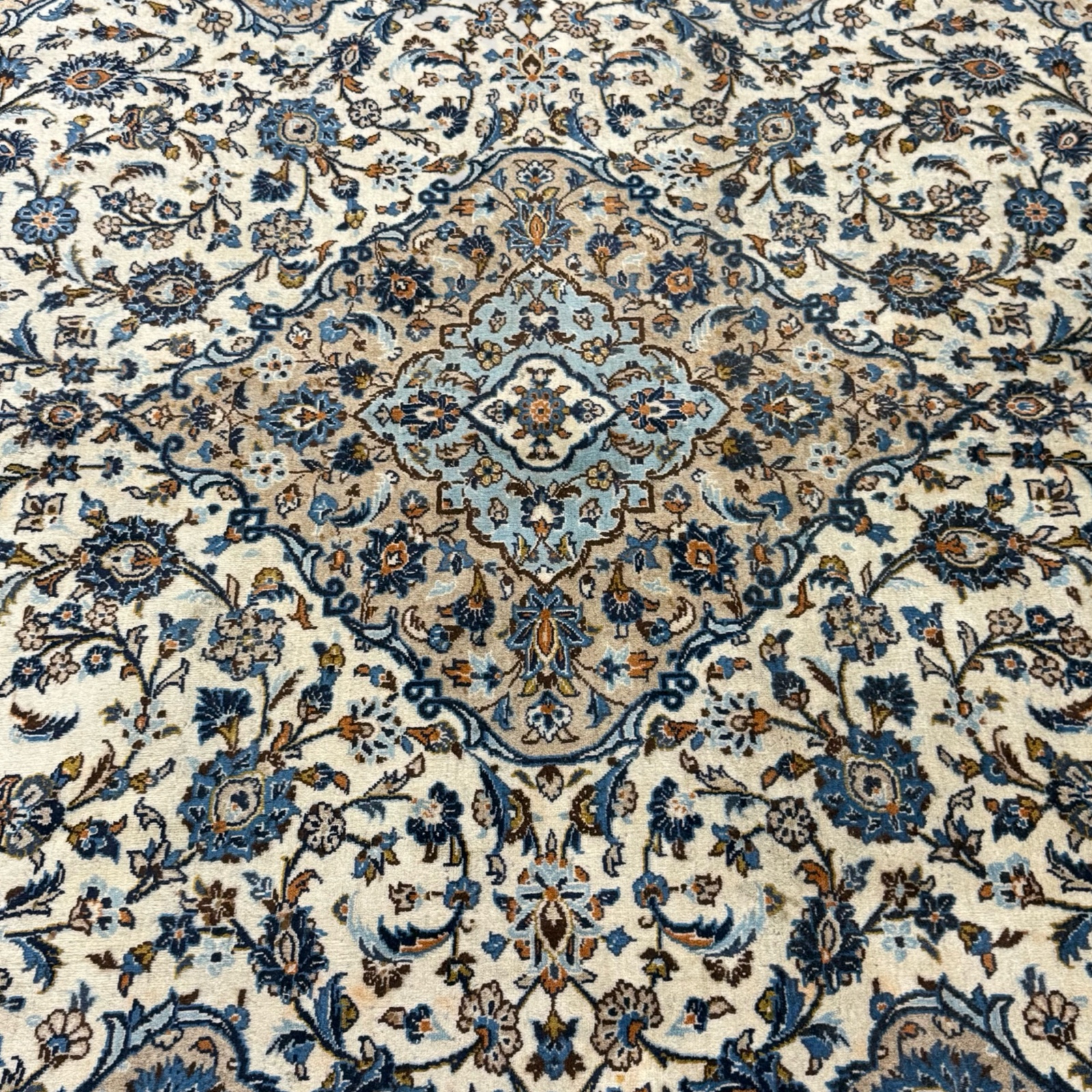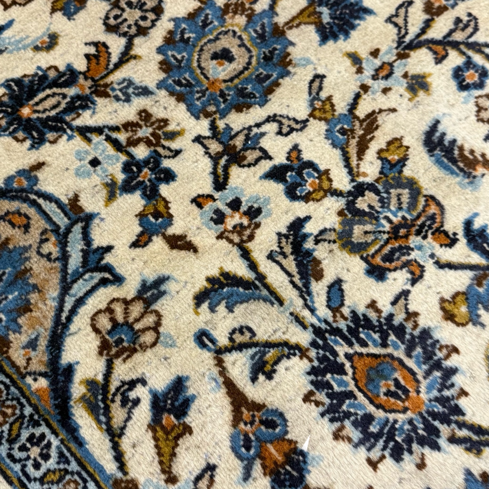 A Kashan rug is a high-quality Persian rug from the Kashan region in Iran, known for its intricate floral patterns and rich color palette, including deep reds, blues, and ivories. Made from fine wool, these rugs are durable, soft, and renowned for their beauty, making them a timeless addition to any home.