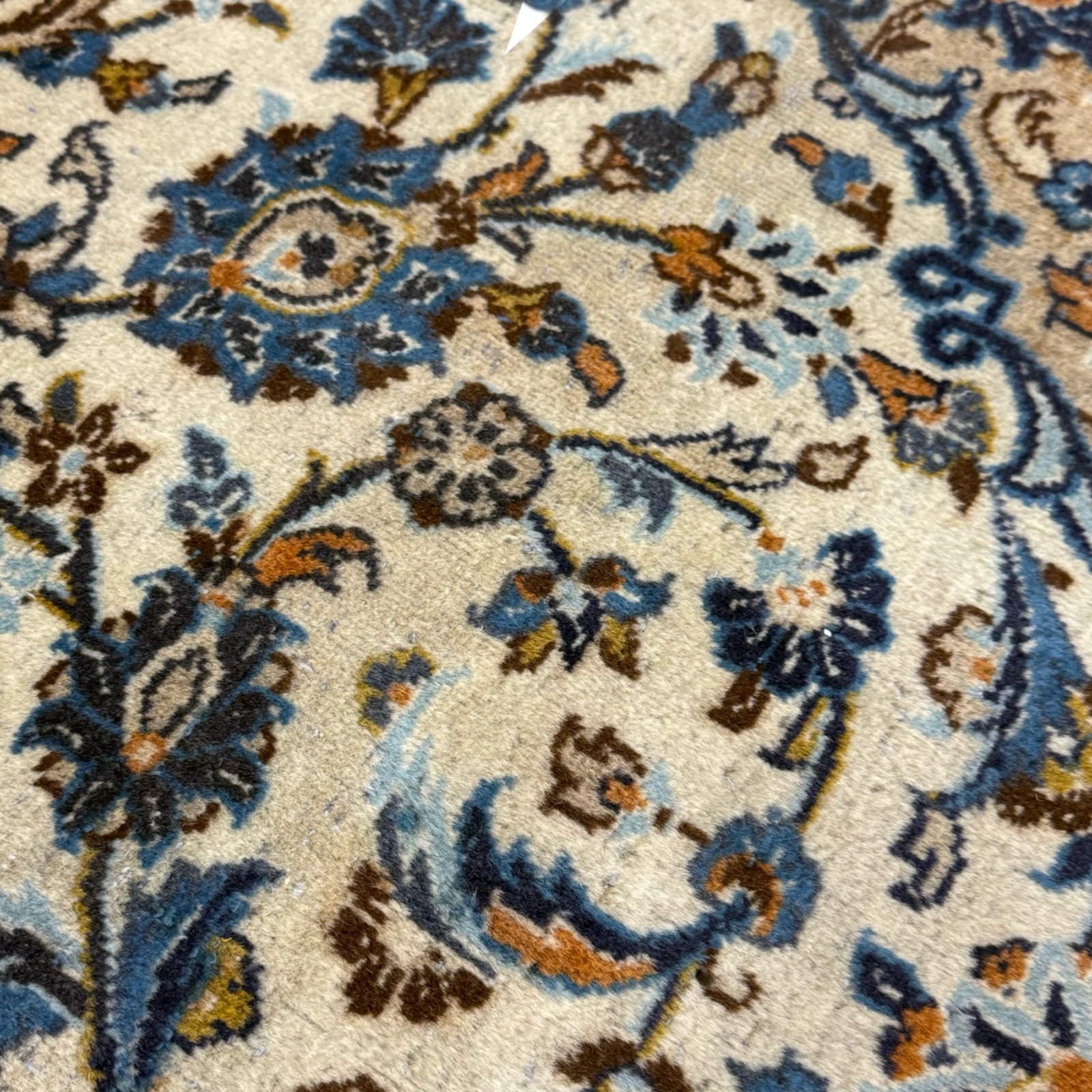 355 x 248cm Hand Knotted Ivory And Beige Kashan Persian Rug