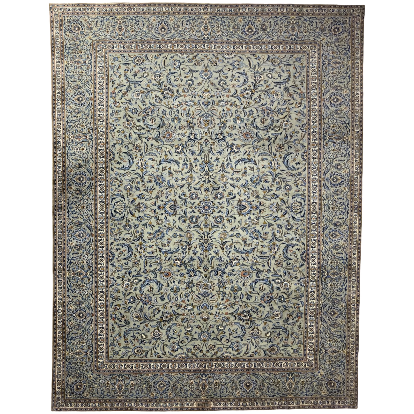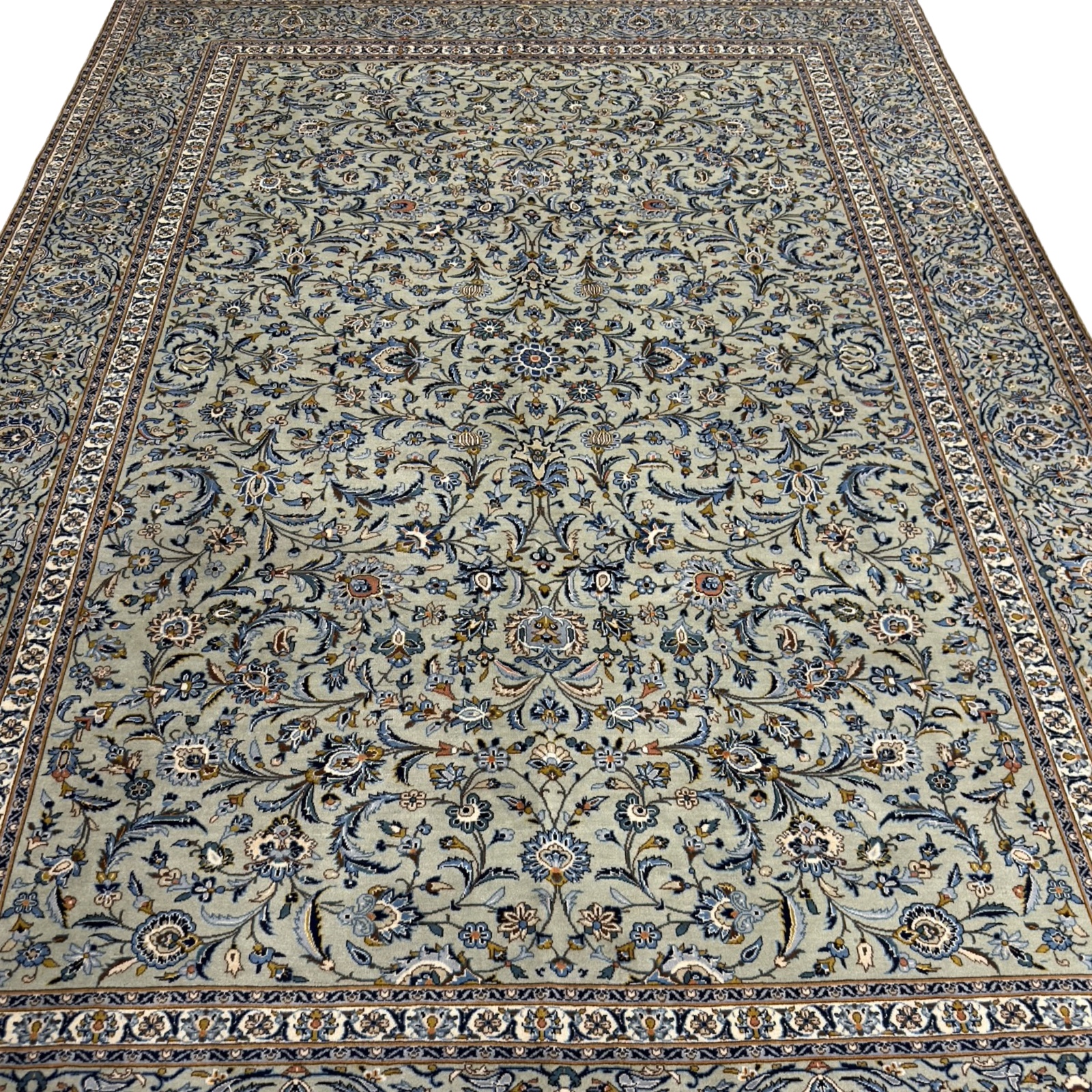 395 x 280cm Rare Hand Knotted Persian Green Kashan All Over Rug