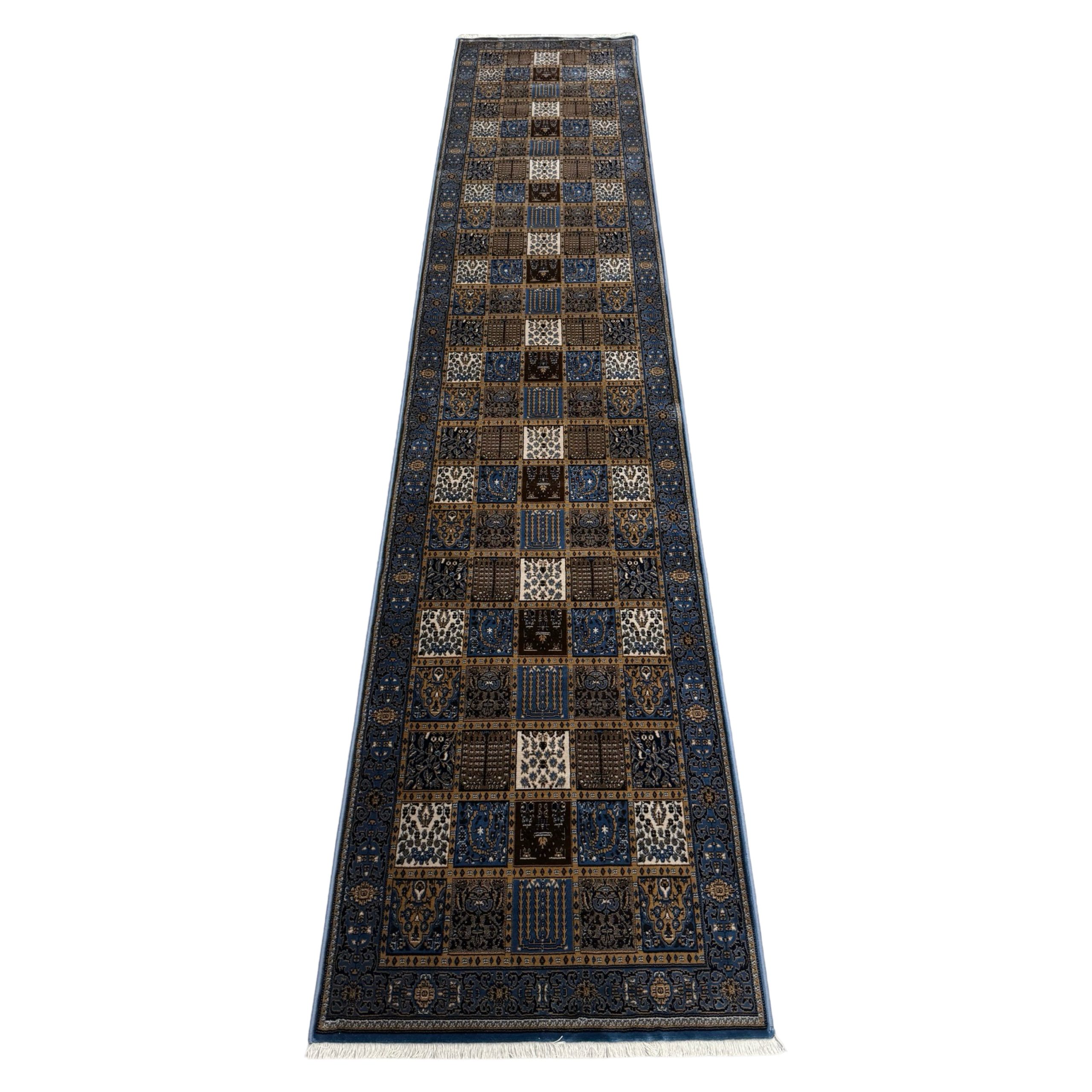 400 x 80cm Turkish Machine Made Blue Bakhtiari Runner Rug
