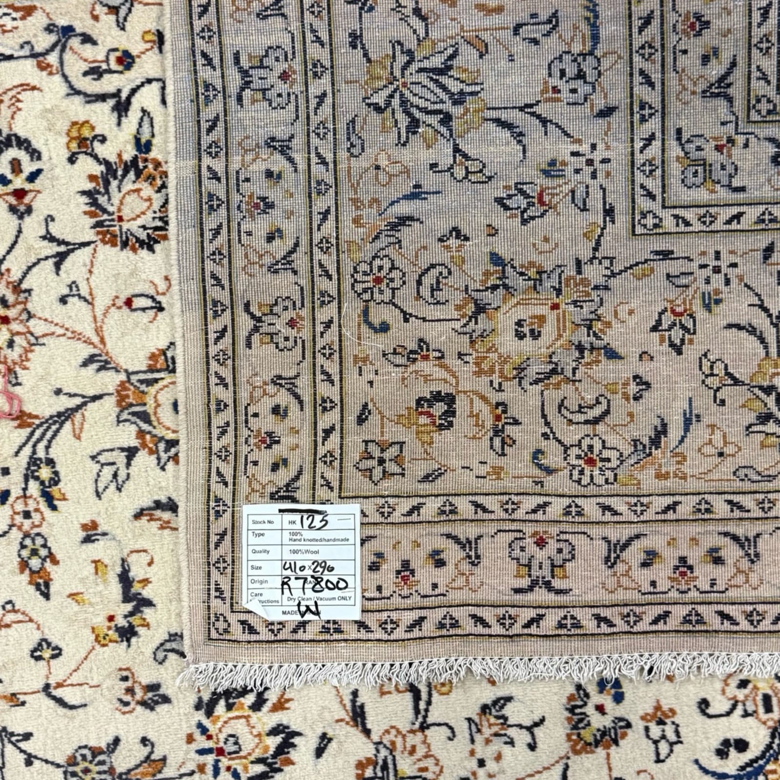410 x 290 cm Hand Knotted Persian Cream Kashan Wool Rug