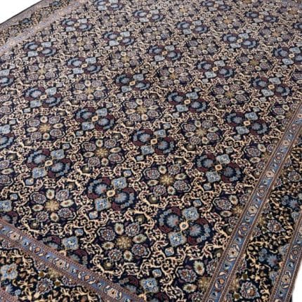 Details : A Moud Persian rug is a type of traditional hand-knotted rug originating from the Moud region in northeastern Iran, near