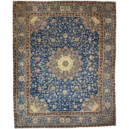 376 x 290cm Hand Knotted Blue Persian Mashad Rug